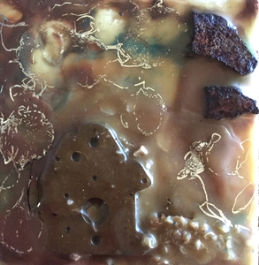 Schilderen met bijenwas in combinatie met oliepastels, olieverf, inkt, foto kopieen, gevonden materialen. Mixed media met gesmolten en verhitte bijenwas in de hoofdrol.