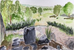 2022Een onverwachts uitzicht ergens op de Veluwe op 80 meter hoogte. Een mooie plek voor Urban Sketching, uitgewerkt met aquarel.